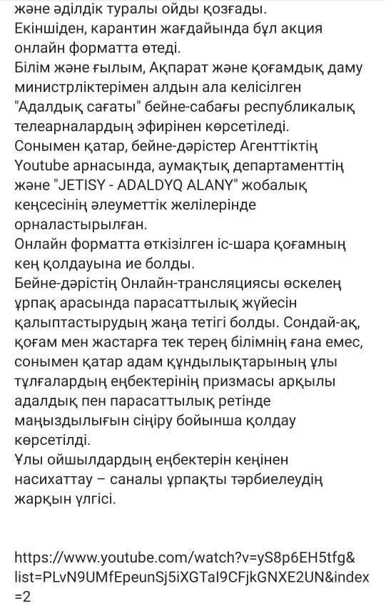 » » "Адалдық сағаты" жалпы республикалық акциясы