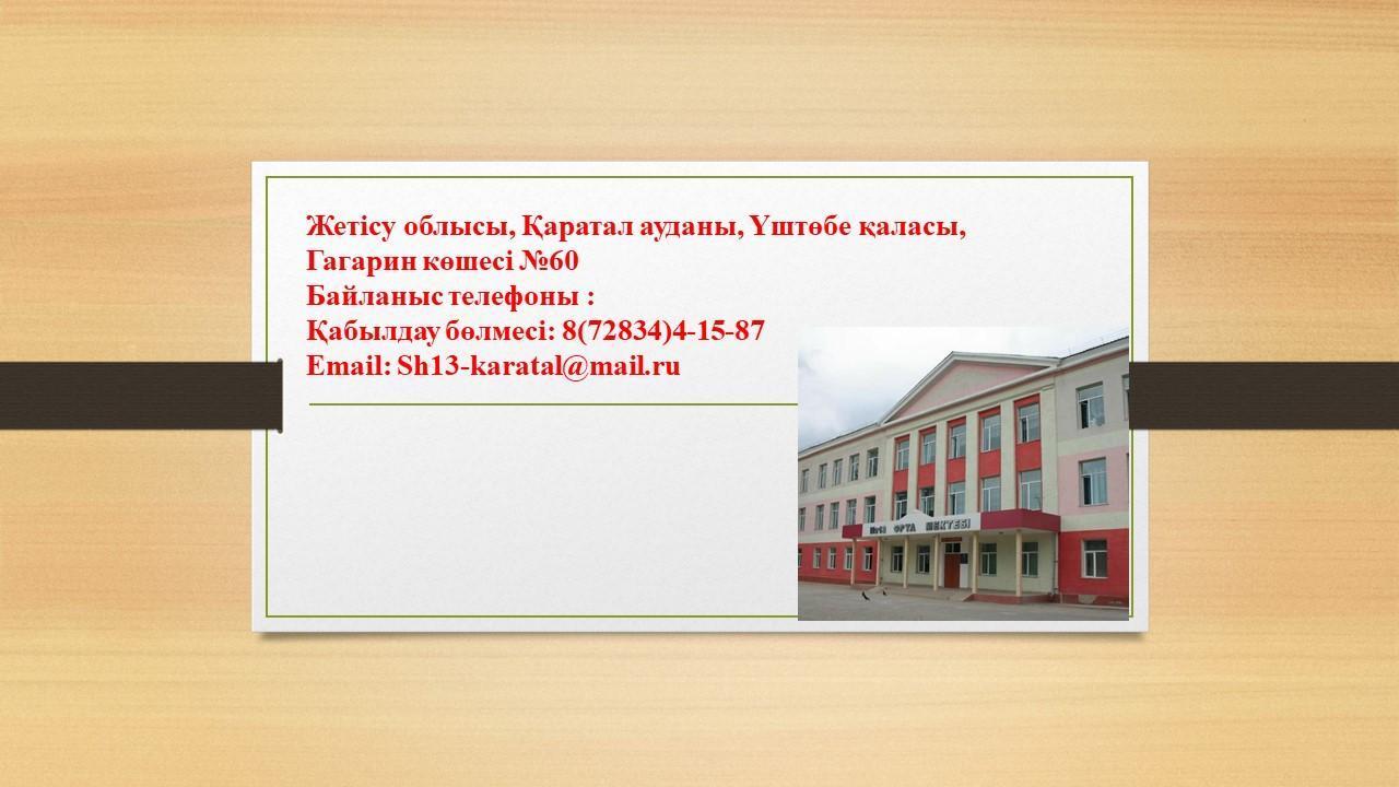 Байланыс ақпараты » № 13 орта мектеп жанындағы интернатымен