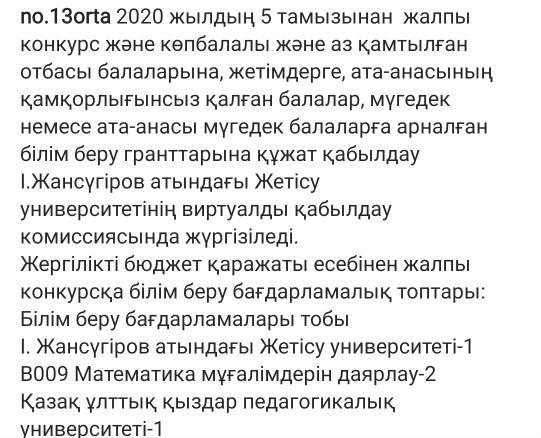 05 август 2020 0 1 2 3 4 5 2020 жылдың 5 тамызынан бастап жергілікті бюджет қаражаты есебінен білім беру гранттарына құжат қабылдау