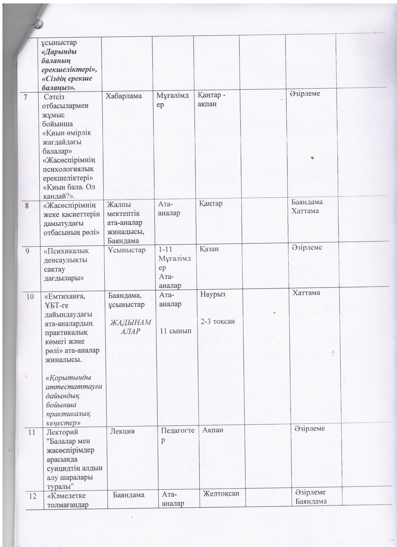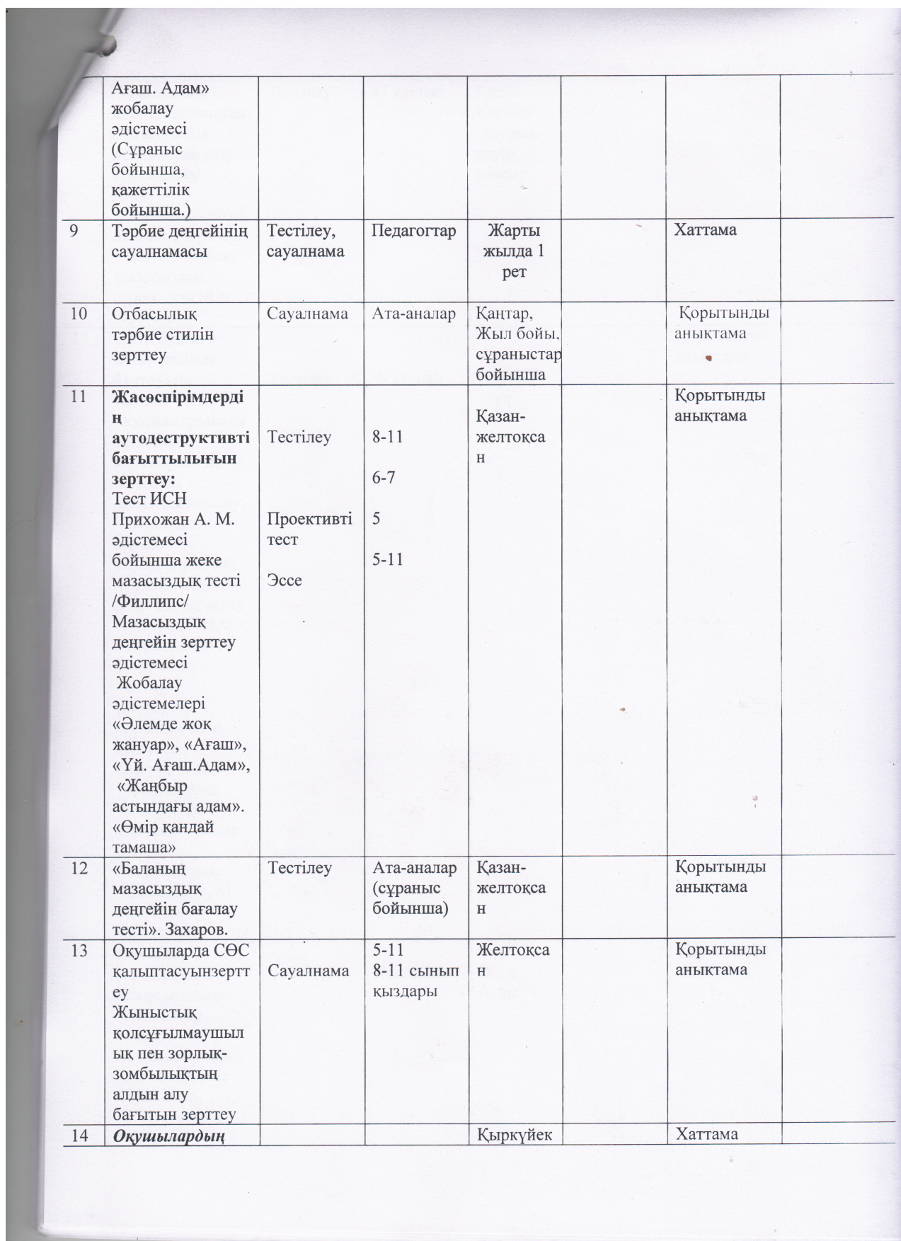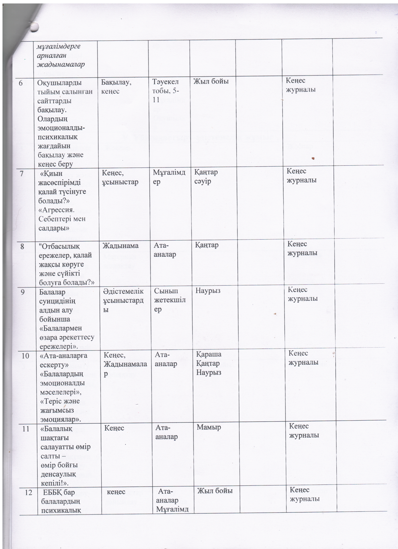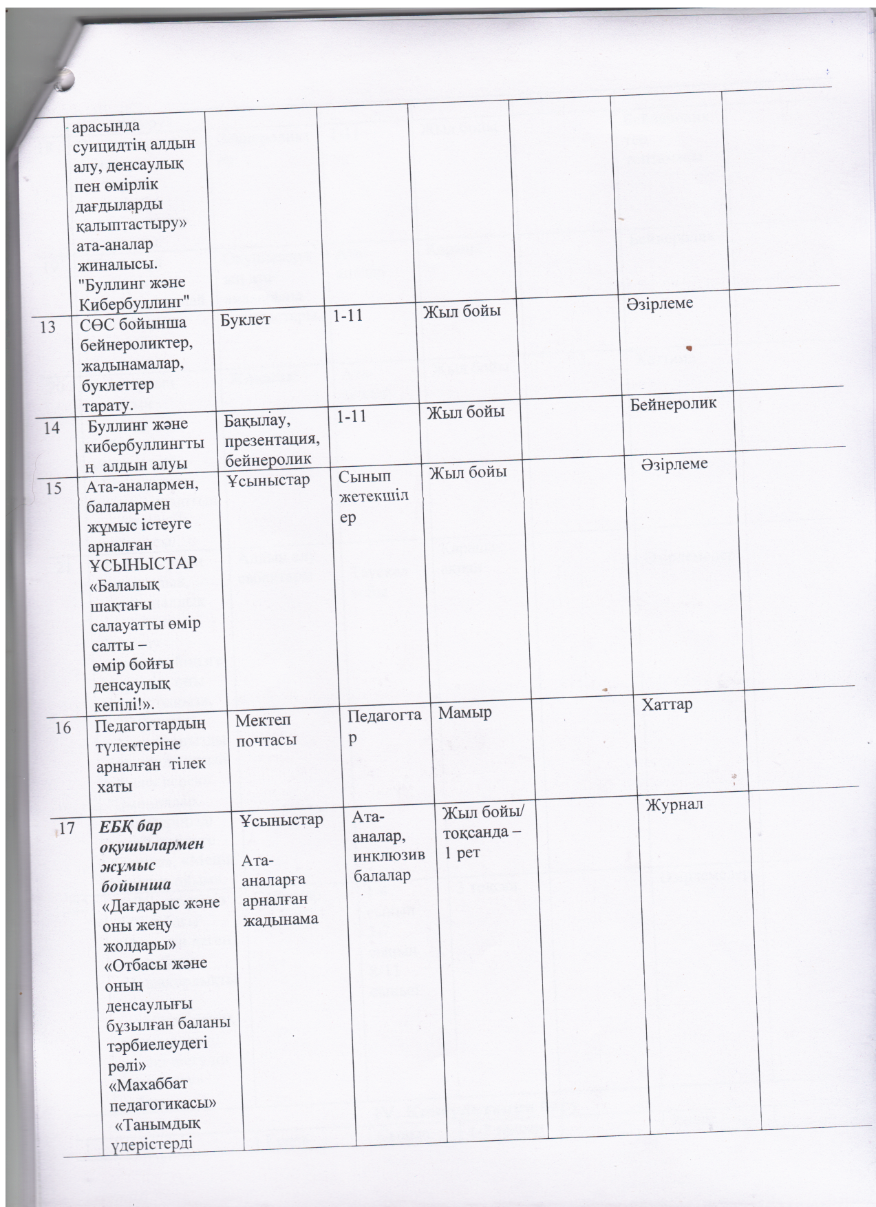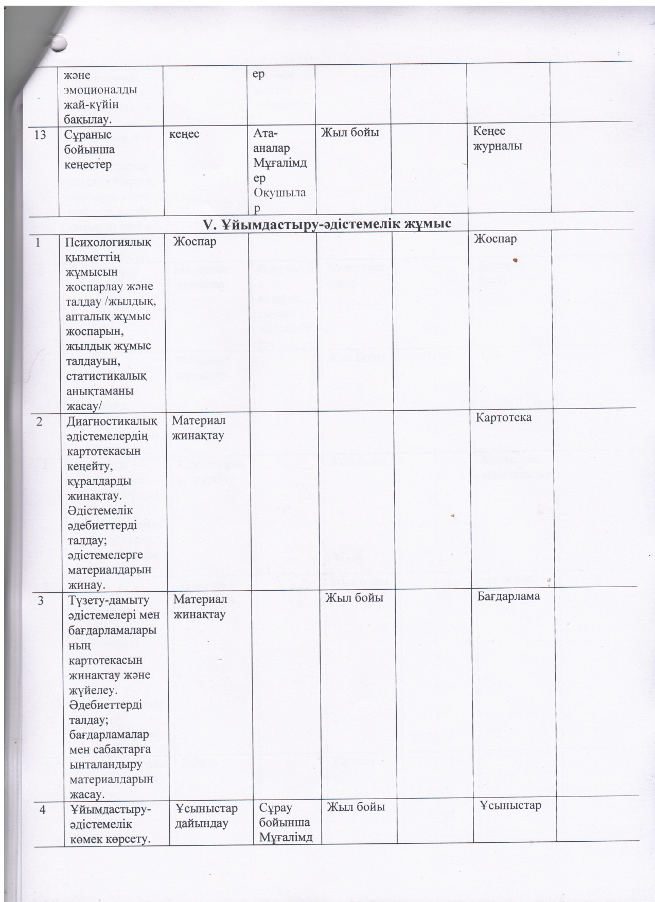 2023-2024 оқу жылындағы педагог-психологтың жылдық жұмыс жоспары » № 13 орта мектеп жанындағы интернатымен