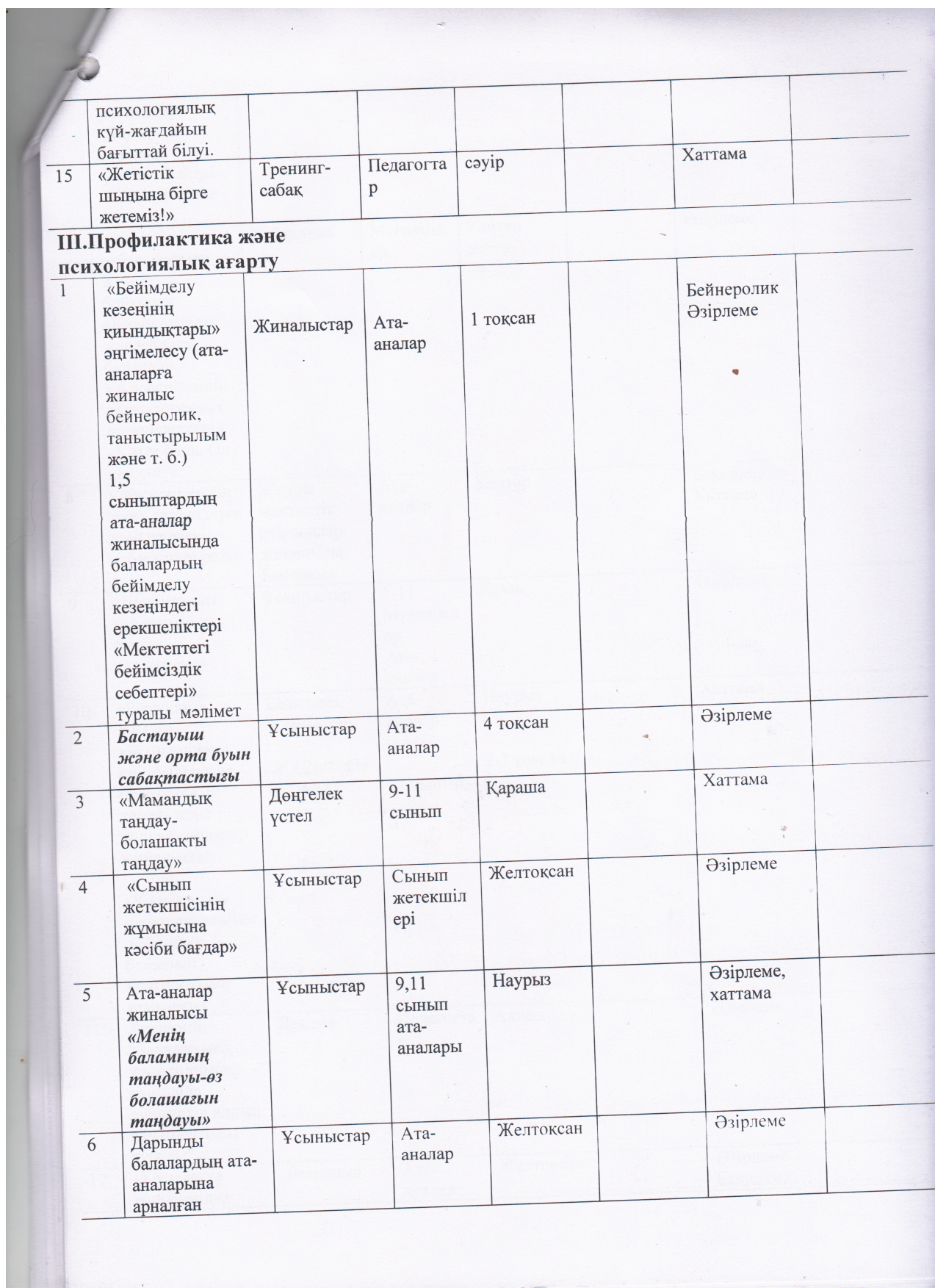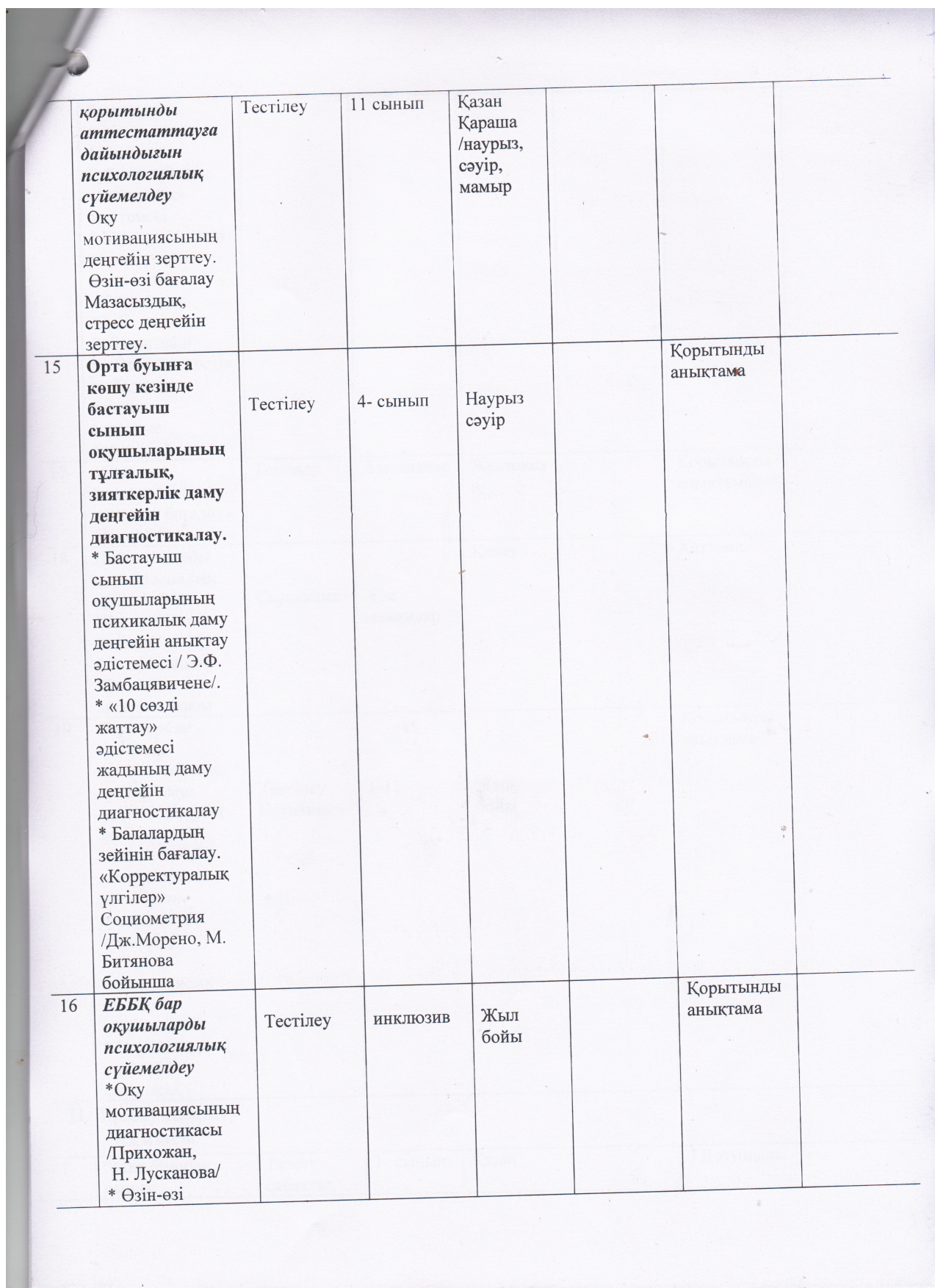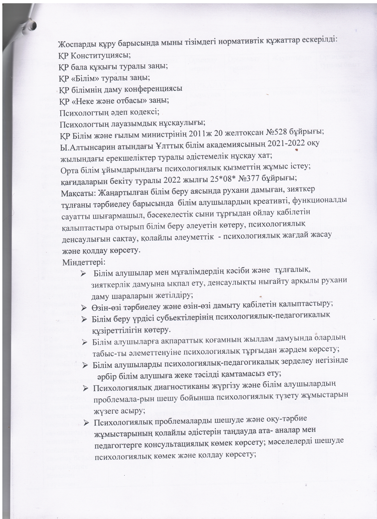 2023-2024 оқу жылындағы педагог-психологтың жылдық жұмыс жоспары