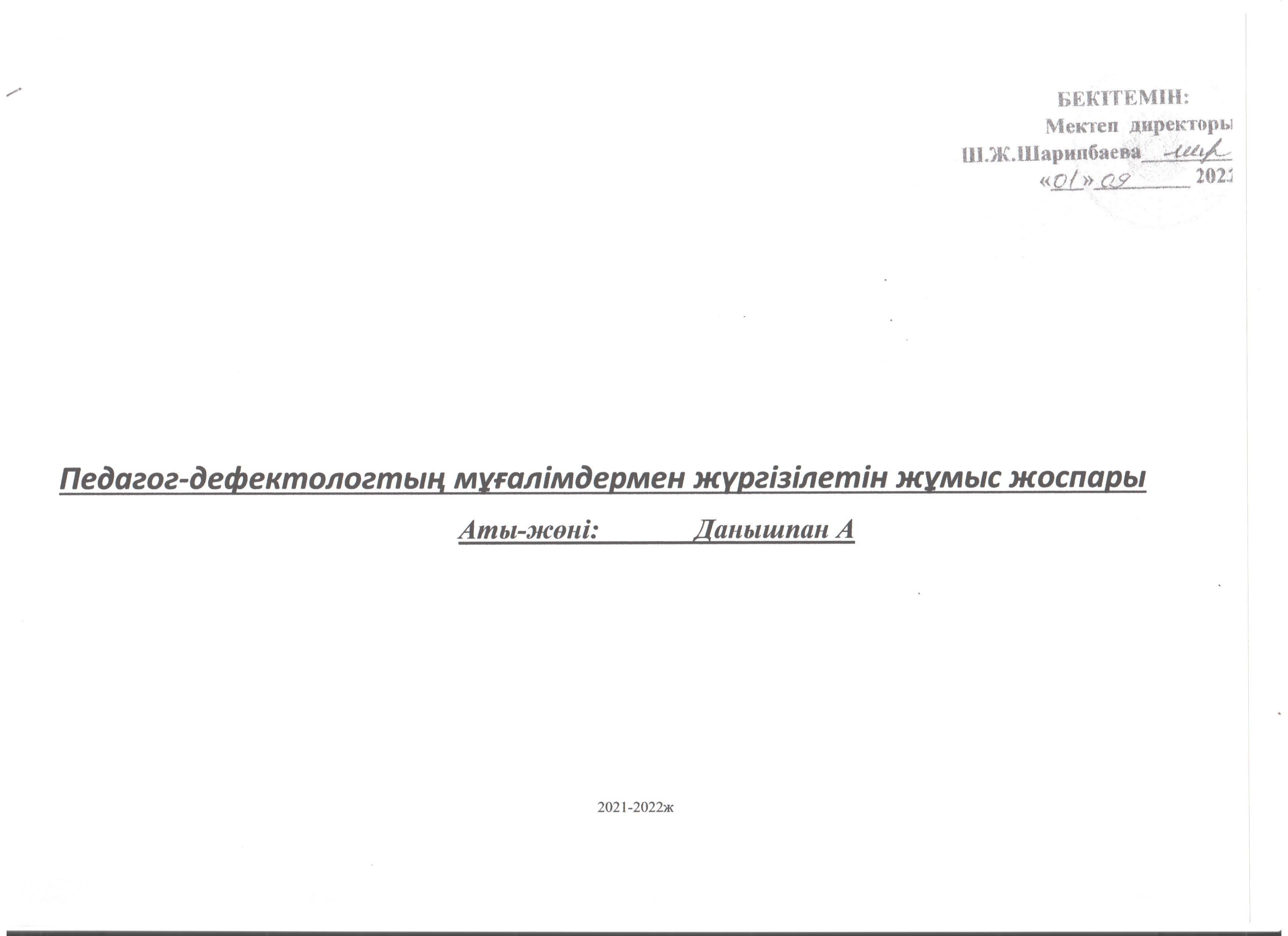 Мұғаліммен жылдық жоспар2021-2022ж