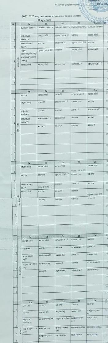 Сабақ кестесі 2 ауысым
