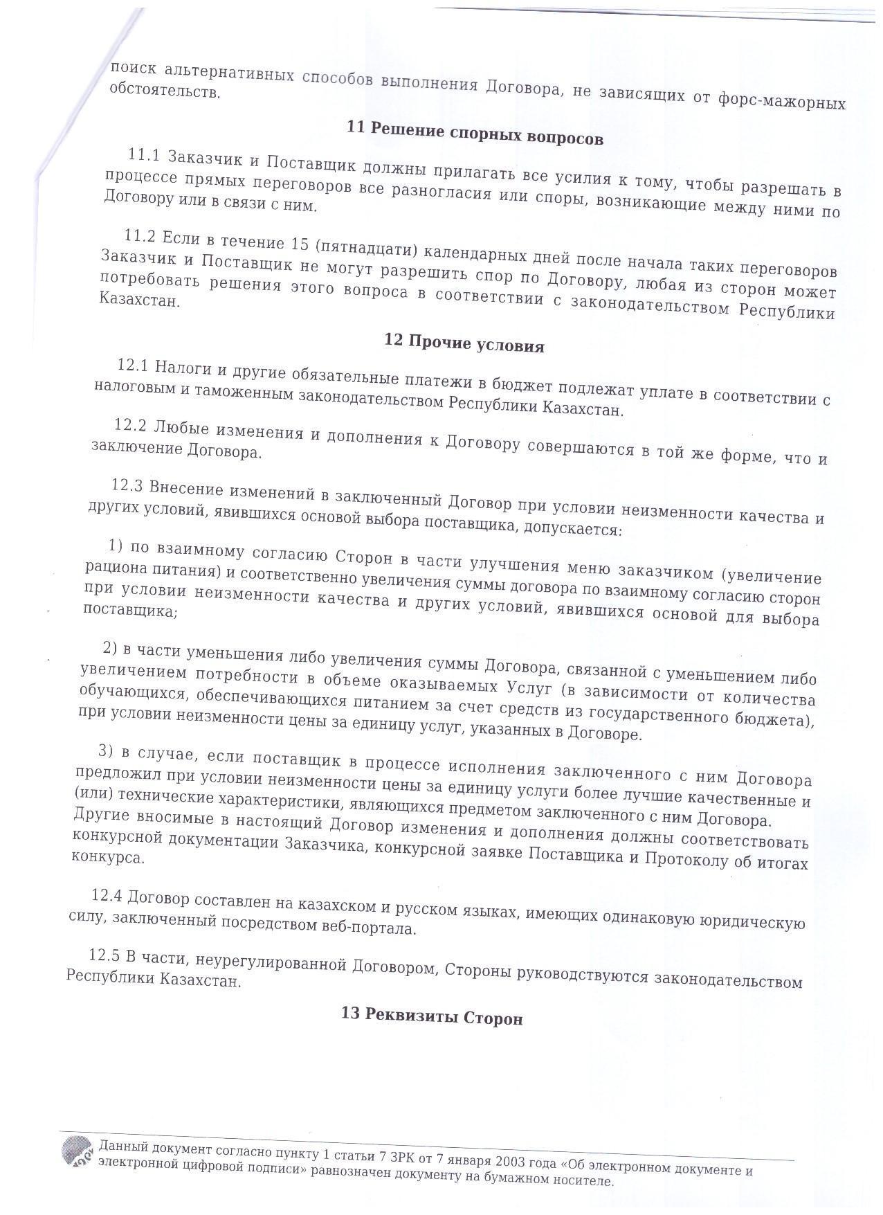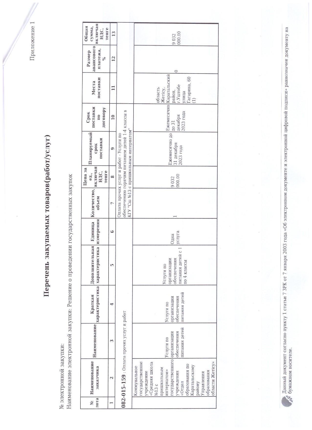 2023-2024 оқу жылындағы Мектеп пен асхана келісім шарты » № 13 орта мектеп жанындағы интернатымен